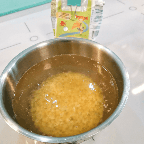 В маленькой кастрюле вскипятить воду, затем подсолить и добавить звездочки. Огонь убавить.