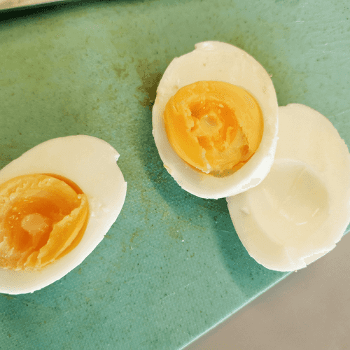 Яйцо поставить вариться до состояния почти вкрутую. На среднего размера яйцо уходит примерно 7 минут варки после закипания.