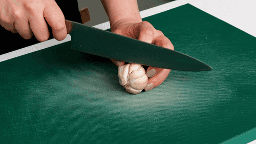 Головку чеснока разрезать пополам, также не очищая.