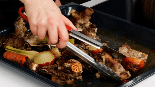 Этот рецепт позволяет сварить густой насыщенный говяжий бульон, который потом можно использовать как угодно. Варить его довольно просто, главное, чтобы у вас было 3,5 часа свободного времени. Готовить говяжий бульон обязательно нужно из костей — тогда он получится наваристым и вкусным, остальные ингредиенты какие-то обязательны, какие-то нет. И если под рукой не окажется помидоров, зеленой части порея и тимьяна, бульон все равно получится, главное, чтобы свое место в кастрюле заняли лук, морковь, сельдерей, лавровый лист и перец.