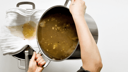 Готовый говяжий бульон процедить через мелкое сито.
