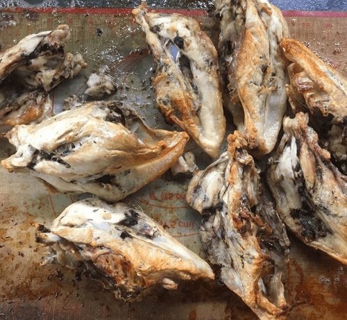 Остовы или другие части курицы запечь в духовке на большой температуре до золотистой корочки.