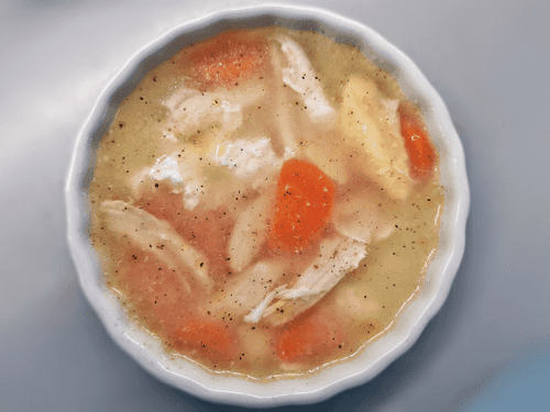 Куриный бульон с топпингом из яйца — это блюдо, сочетающее в себе нежность куриного мяса и шелковистую текстуру взбитого яйца. Его происхождение можно отнести к традиционным питательным супам, которые веками готовили во многих культурах. Этот вариант отличается тонким балансом вкусов, где сладковатая морковь добавляет мягкость, а черный перец придает едва уловимую пряность. Важной особенностью блюда является его насыщенность и питательность: яйца, добавленные в горячий бульон, создают воздушные завитки, а куриное мясо, разобранное на волокна, делает его сытным. Такой бульон идеально подходит для восстановления сил, согрева в холодное время года и просто приятного ужина. Подавать его рекомендуется теплым, с легким акцентом свежего молотого перца, подчеркивающего глубину вкуса.
