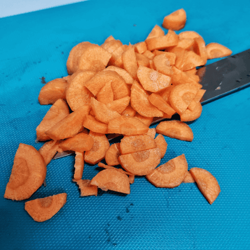 Морковь нарезать полукругом.