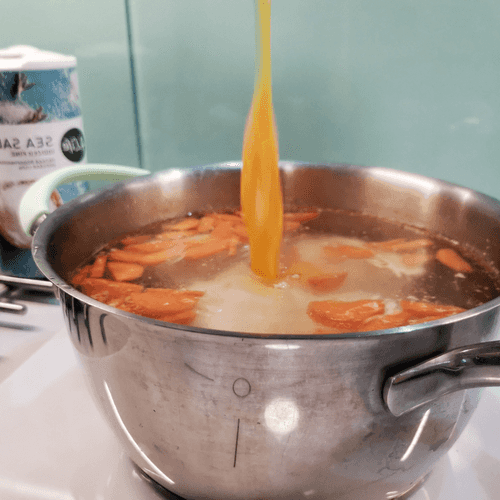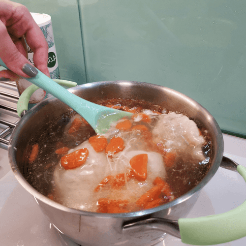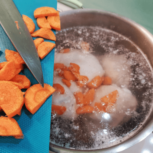 За 5 минут до конца варки добавить в бульон морковь.