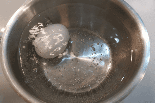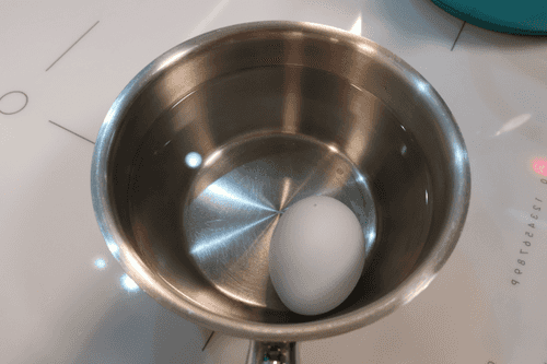 Отдельно положить яйцо в воду. Одно яйцо на одну порцию.