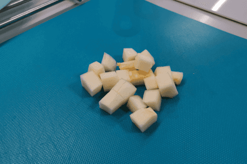 Нарезать кабачок небольшими кубиками.