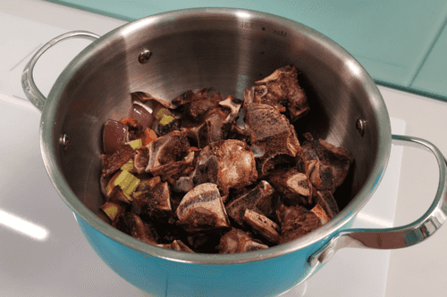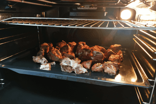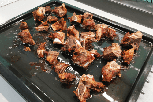 Выложить говяжьи кости на противень и отправить в разогретую до 200 градусов духовку.