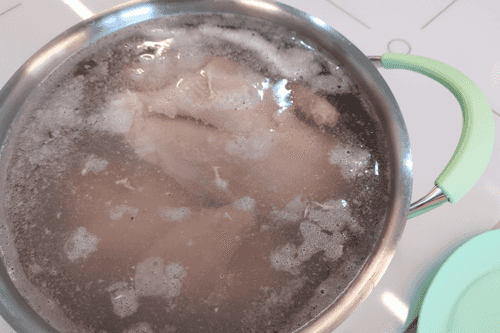 Как только вода закипит, убавить огонь до среднего и снять пену.