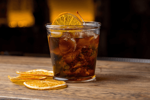Вращательным движением нужно перемешать барной ложкой содержимое, а затем отцедить напиток в бокал.