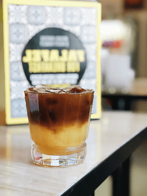 В стакан со льдом налить фреш, затем кофе и сироп.