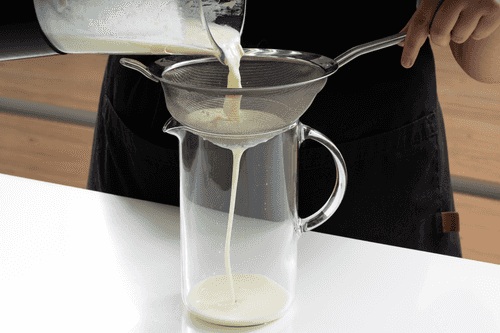 Процедить через ситечко в графин.