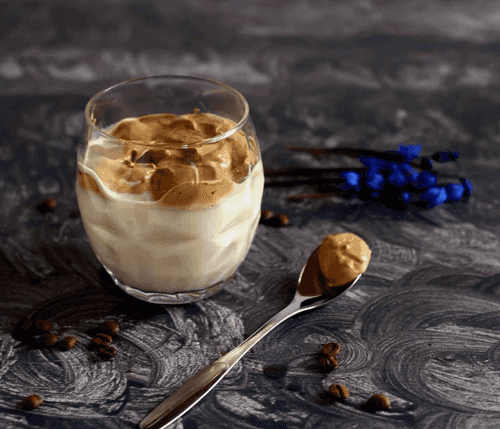 В пропорции 1:1 нужно в течение примерно 2 минут взбивать кофе, сахар и ликер.