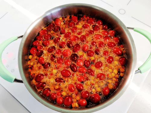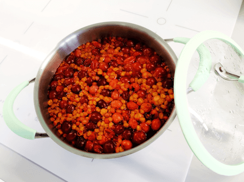 Столовой ложкой аккуратно раздавить ягоды о стенку кастрюли.