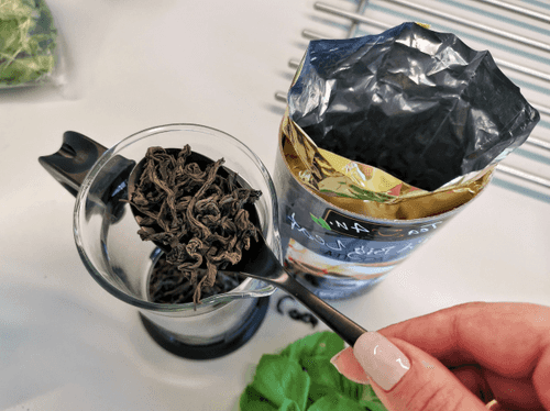 Высыпать черный чай в заварочный чайник.
