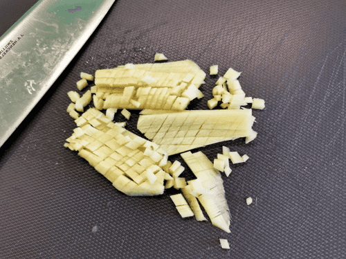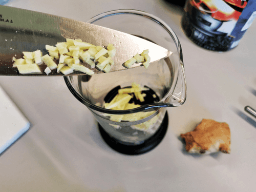 Мелко нарезать имбирь.