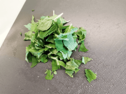 Отделить листья мяты от стеблей и нарезать.