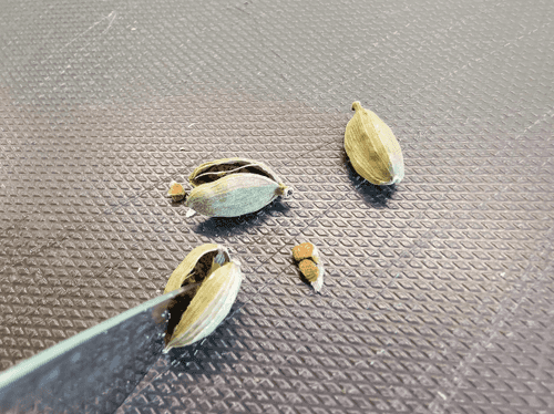 Достать из кардамона семена и отправить их к чаю.