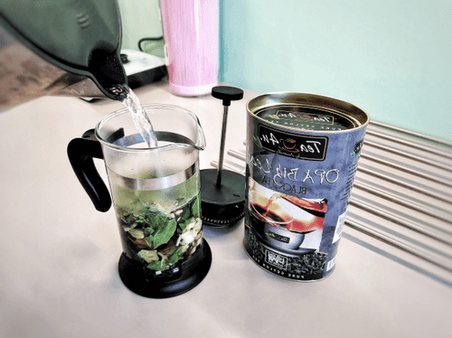Отправить мяту в чайник.