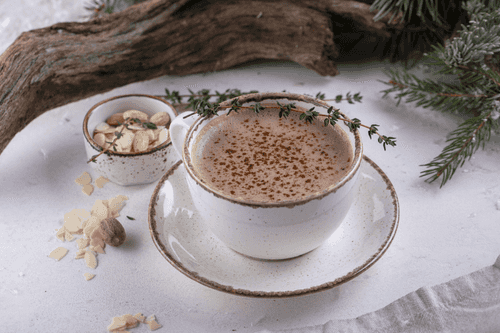 Перелить готовый напиток в чашку и посыпать небольшим количеством мускатного ореха. Коктейль готов!
