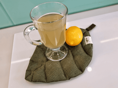 Добавить мате и сок лимона. Залить горячей водой (не более 70 градусов) и дать настояться около 15 минут. Использовать в качестве заварки, разбавляя почти кипятком.