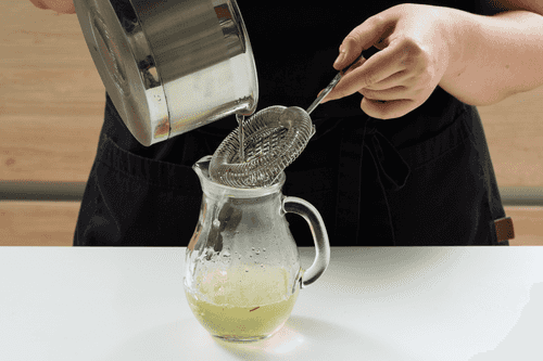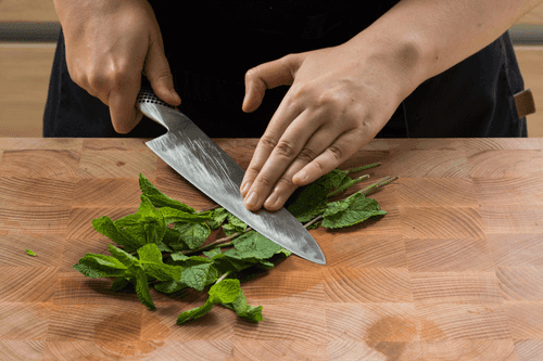 Мяту слегка помять плоской стороной ножа, чтобы она дала аромат.