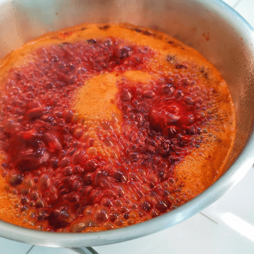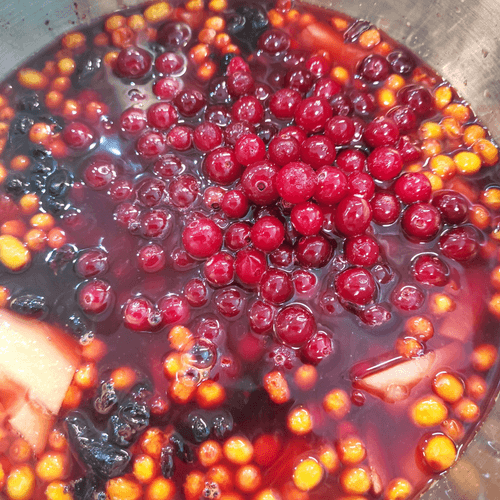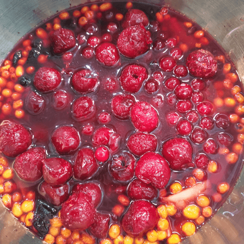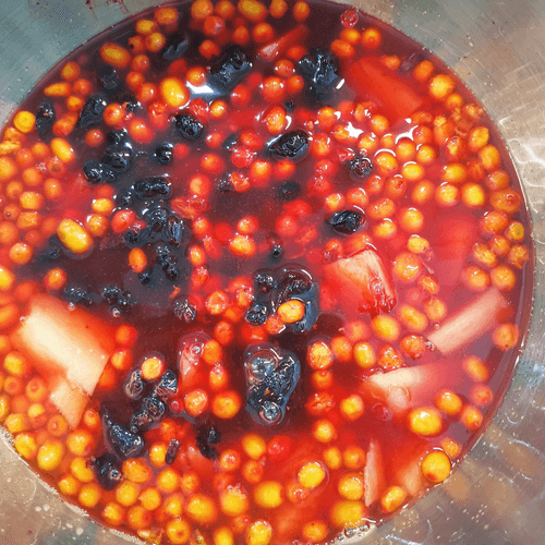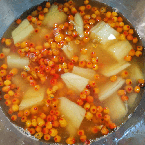 Как только вода закипит, добавить облепиху и долить остатки воды.
