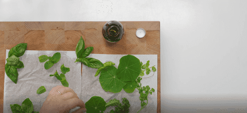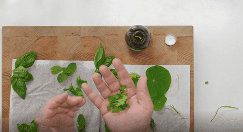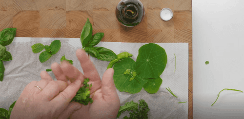 Проделать ту же процедуру с листьями настурции и базилика.