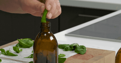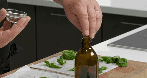 Заложить все листья в бутылку объемом 300 мл. Лучше всего подойдет бутылка из темного стекла — через нее проникает меньше солнечных лучей.