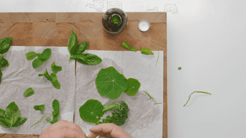 Хорошо просушить листья бумажными полотенцами или в специальной сушилке.