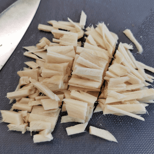 Имбирь нарезать тонкой соломкой.