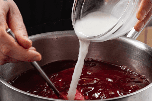 Влить раствор крахмала в кастрюлю и снова довести до кипения.