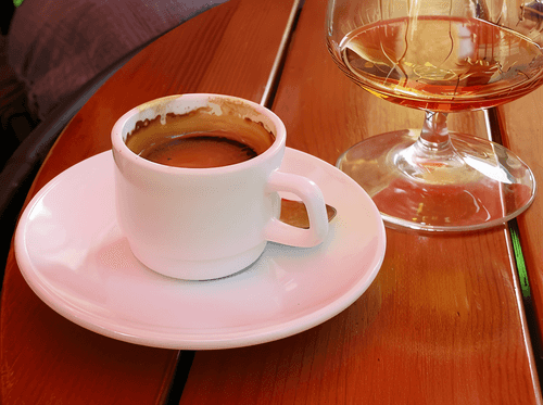 Вмешайте яйца в холодный кофе и добавьте бренди.
