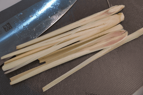 Нарезать полосками по волокнам лемонграсс.