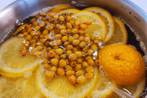 Добавить облепиху. Варить еще 15 минут на среднем огне, не допуская повторного закипания.