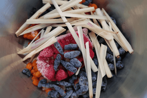 Ягодный морс с физалисом — это истинное наслаждение для любителей освежающих и полезных напитков. Его корни уходят в европейские традиции приготовления витаминных морсов, богатых вкусами и ароматами лесных и садовых ягод. Вкус напитка удивляет тонким балансом кислинки облепихи, сладости малины и глубины жимолости, а лемонграсс и сушеный барбарис придают ему экзотическую нотку. Физалис, известный как «ягода солнца», вносит в морс легкую фруктовую терпкость, а апельсин добавляет свежесть и цитрусовую яркость. Этот морс не только приятно освежает, но и насыщает организм витаминами, укрепляя иммунитет. Его можно подавать охлажденным в летнюю жару или теплым в прохладные дни, чтобы насладиться его согревающим эффектом.