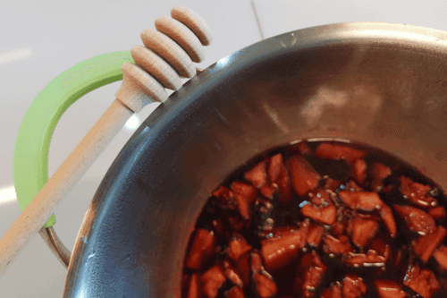 Добавить мед. Перемешать.