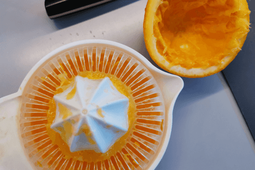 Выжать сок половины апельсина.