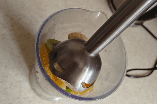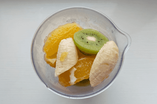 Все фрукты сложить в блендер.