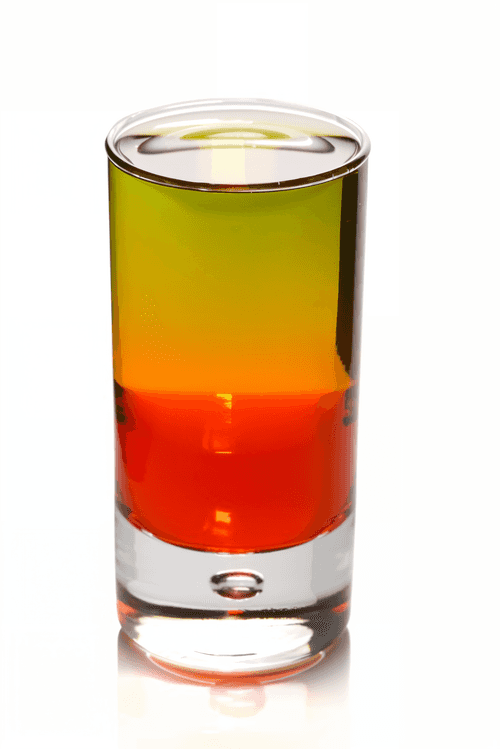 Налить в рюмку–шот красный абсент и самбуку в пропорции 1 к 1.