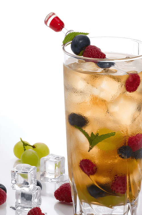 Имбирный пунш с белым ромом, ананасами и черникой — освежающий коктейль, который объединяет экзотические нотки фруктов с пикантной пряностью имбирного эля. Его корни можно проследить в европейских традициях приготовления фруктовых пуншей, популярных на летних вечеринках. Апельсин, лайм и ананас придают напитку яркую кислотность и насыщенность вкуса, в то время как белый ром добавляет мягкость и глубину. Черника и листья мяты освежают композицию, создавая легкий, но насыщенный букет. Этот пунш идеально подходит для летних мероприятий, балов с открытым небом или уютных встреч с друзьями. Сладость фруктов уравновешивает легкую пряность, а лед делает его еще более освежающим. Такой напиток не только радует вкусом, но и дарит ощущение тропического бриза, где бы вы ни находились.