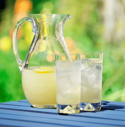 В большой графин процедите лимонад через сито и добавьте нарезанные тонкими ломтиками лимоны и лед.