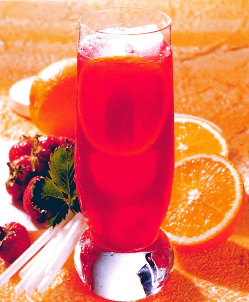 Кружок апельсина опустить в бокал. Сразу подать напиток к столу с соломинкой для напитков.