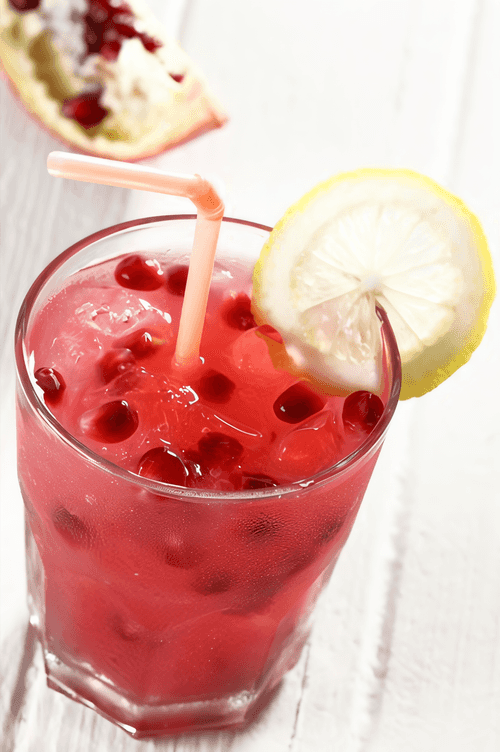Вылейте коктейль в бокал, наполненный льдом и украсьте веточкой мяты и гранатовыми зернами.
