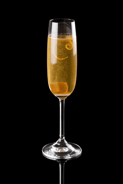 На кусочек сахара капните примерно 3 капли биттера. Положите сахар на дно бокала для шампанского.