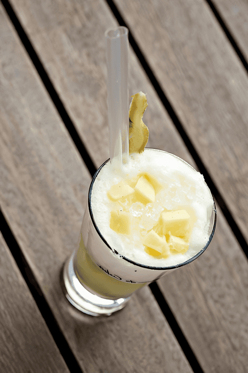 В блендере смешать нарезанное кубиком манго (1 стакан), йогурт, 0,3 стакана концентрированного сока маракуйи, воду и лед.