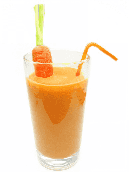 Добавьте морковный сок, йогурт, мед, сок лайма и лед. Взбейте до однородного состояния.