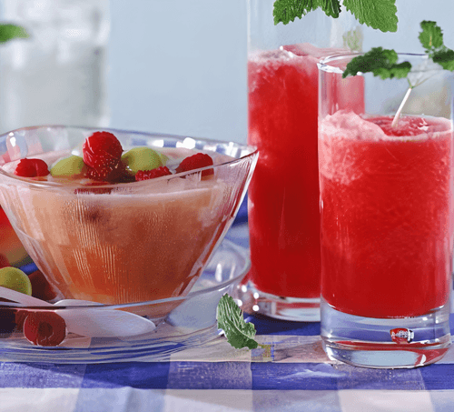 Залить выжатые ягоды водой, прокипятить, процедить отвар, добавить в него сахар, влить сок и остудить.