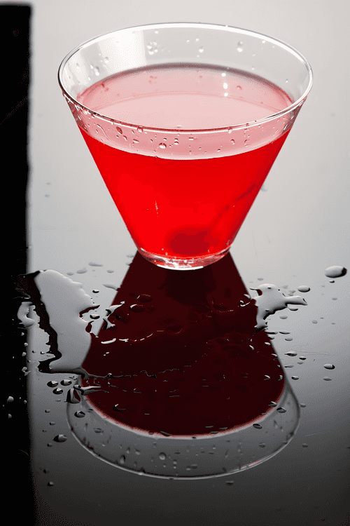 Перелить в охлажденный бокал для мартини и добавить вишенку.