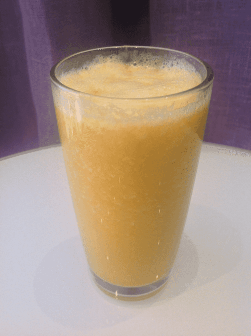 Налейте в высокие бокалы и подавайте, украсив ломтиком манго.